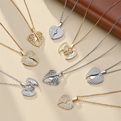 Collar de acero inoxidable con apertura de corazón de melocotón, colgante de alas de Ángel, accesorios de moda con acero de titanio de circón