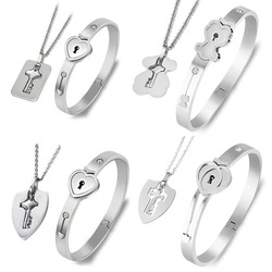 Pulsera de pareja de alta calidad de acero inoxidable con abalorio de corazón de circón, collar de moda, pulseras para expresar amor